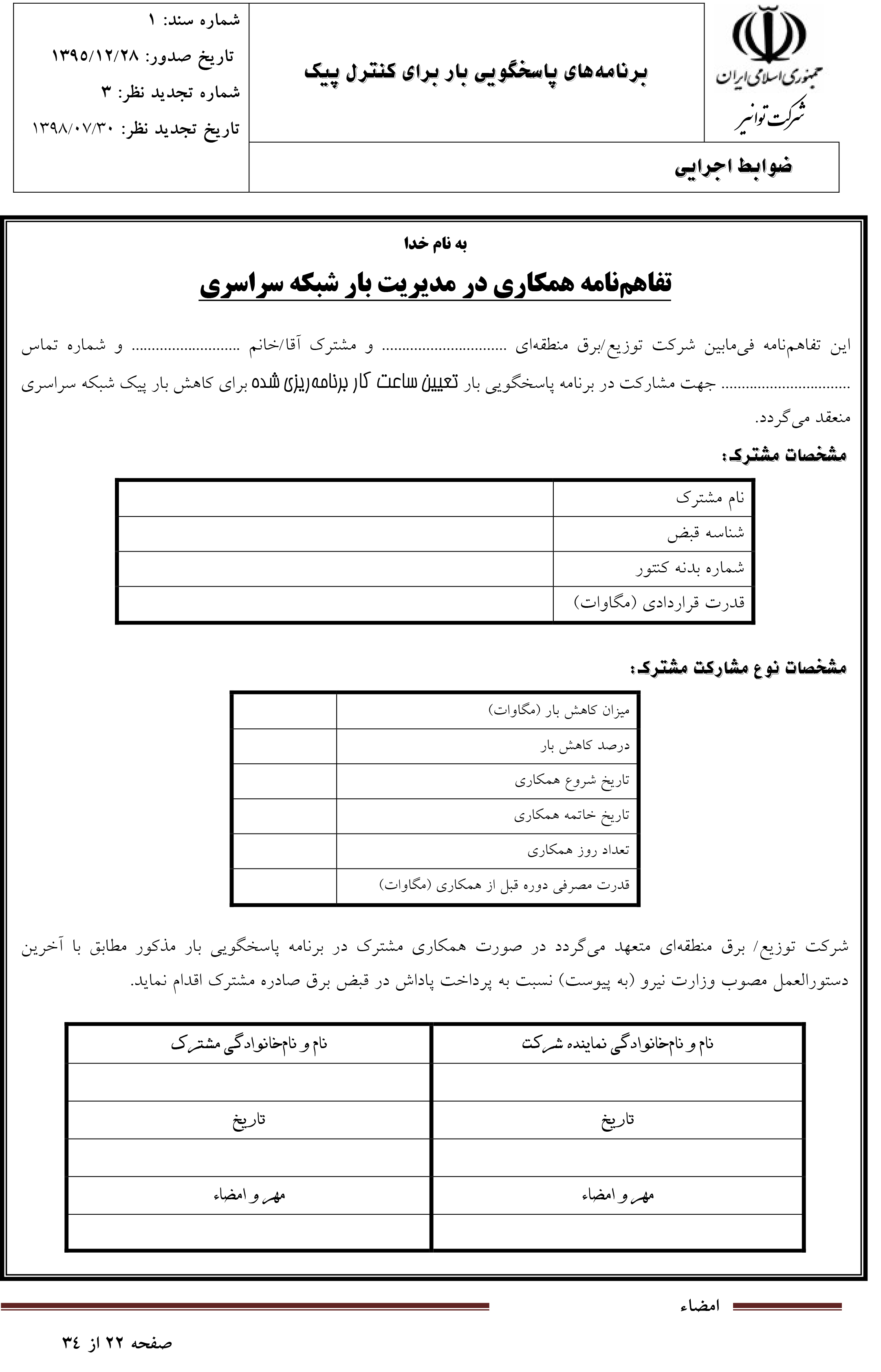 كاهش/قطع بار برنامه ريزي شده 24 ساعته (انجام تعميرات/ تعطيلات سالانه شده)