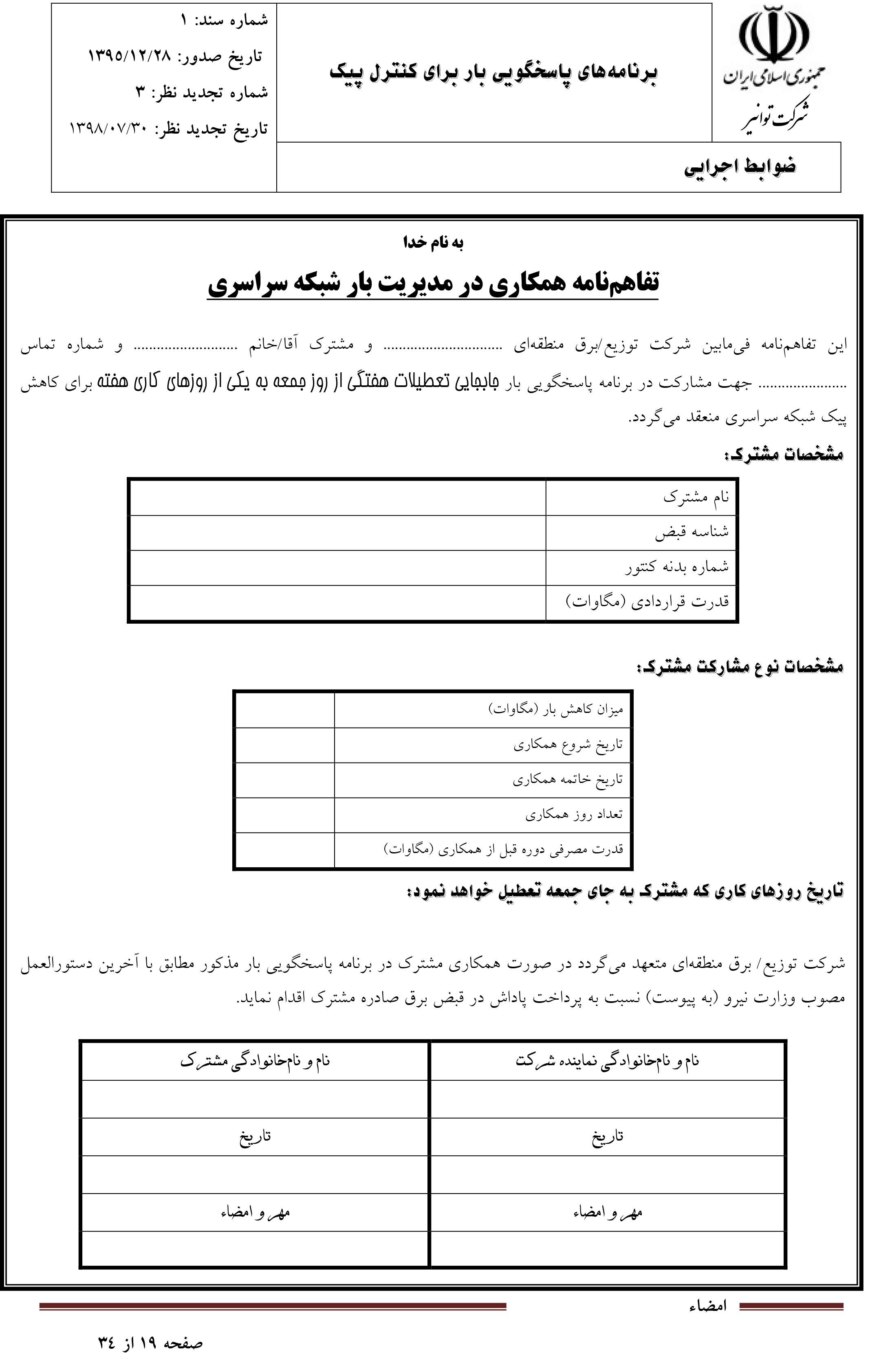 كاهش بار برنامه ريزي شده در ساعات اوج بار
